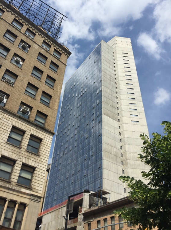 Ściana w systemie szklanego żebra o rozpietości 17 m